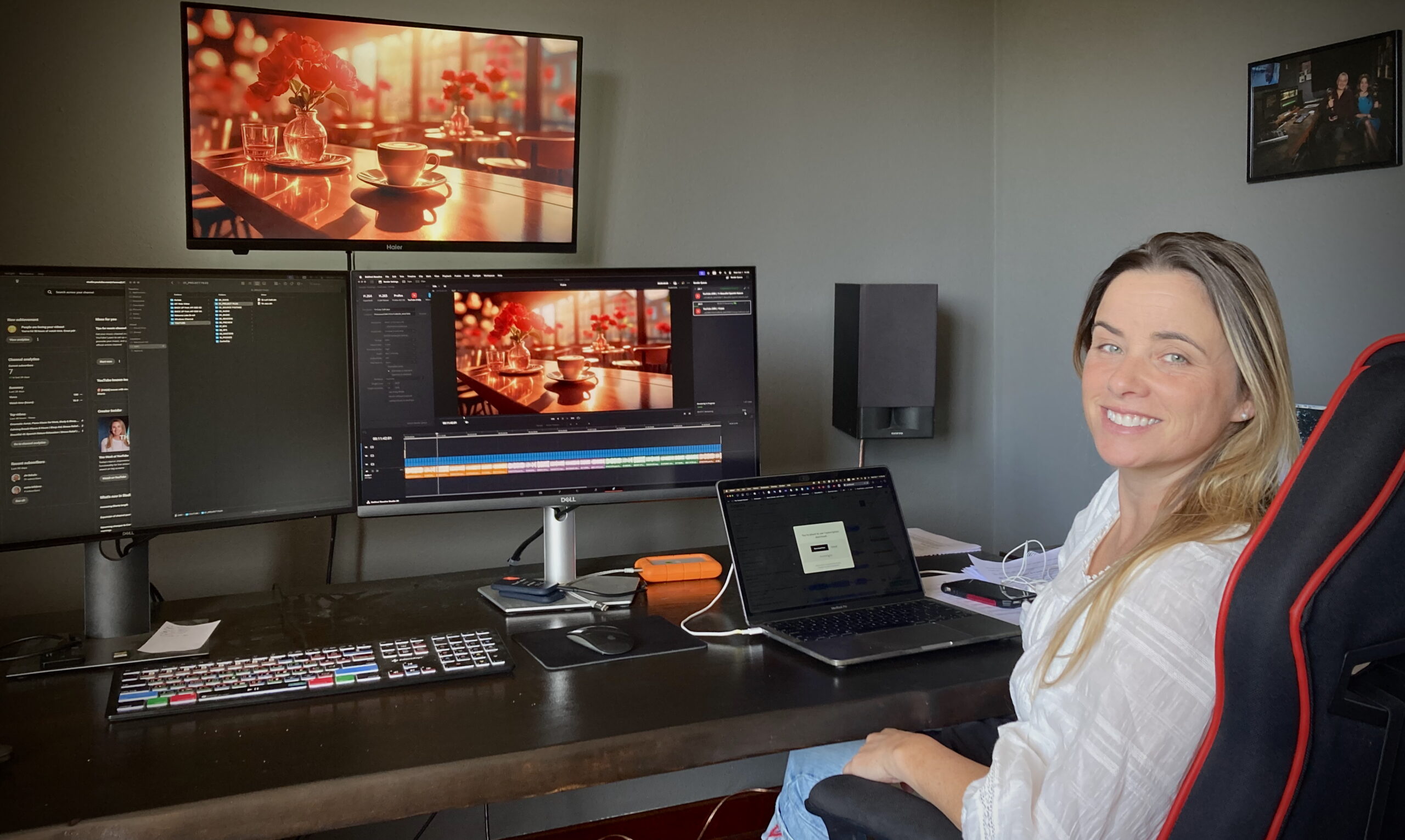 Lucie is in the edit suite, gathering media assets for our next YouTube project while the latest relaxation video is exporting.